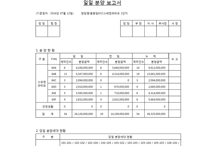 일일 분양 보고서 화면